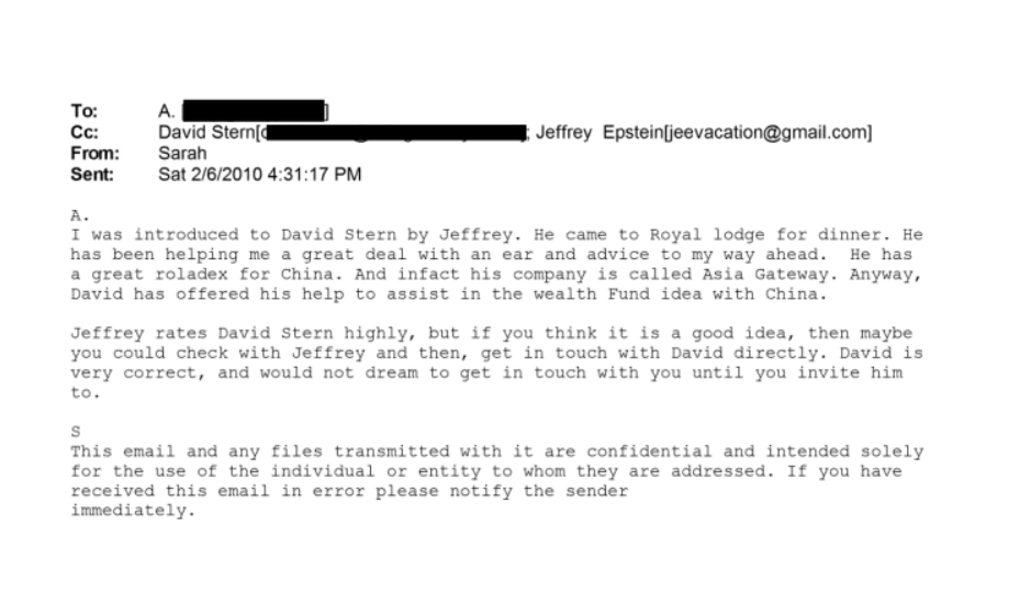 As you can see in the email above, on Feb. 6, 2010, Sarah sends Andrew an email praising Stern and instructing her ex-husband to contact him (with the detail that she’d hosted Stern at Royal Lodge for dinner).